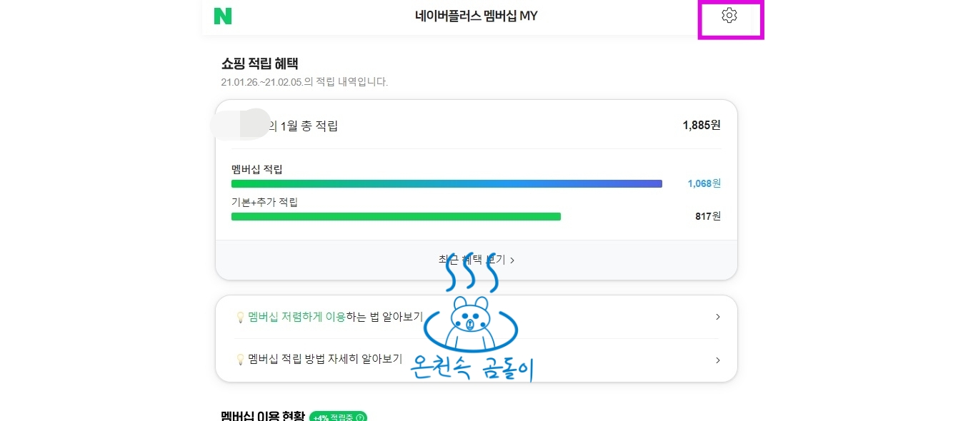 온라인으로 결제를 할 때 네이버페이 포인트를 충전하여 결제하면 충전금액의 몇퍼센트를 포인트로 주고, 물건살때도 멤버십 추가적립이 있는데.... 평소 저는 온라인쇼핑으로 물건을 사고 네이버페이를 거의 이용하기 때문에 저한테는 매달 4900원이 빠져나가도 쌓이는 포인트가 더 많아서 이득이다 싶어 가입을 했습니다.